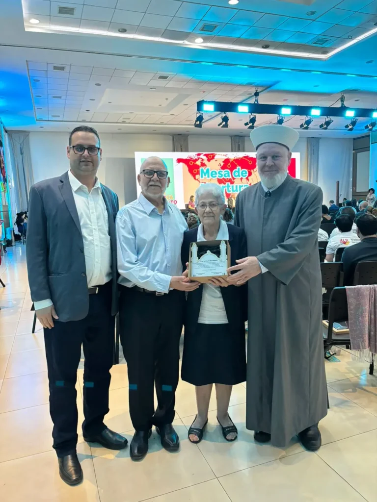 Durante o evento, o Centro Cultural Beneficente Islâmico de Foz-CCBI homenageou a Irmã Terezinha Maria Mezzalira. Uma bonita trajetória humanitária, em especial, na atuação desde o início da fundação da Casa do Migrante, inaugurada em junho de 2008 e na operação Raízes do Cedro, missão do governo brasileiro para repatriação de brasileiros do Líbano. “Comecei sendo religiosa em 1978, trabalhei no Paraguai e também na África do Sul. Temos a missão de trabalhar com migrantes e refugiados”, conclui Mezzalira.